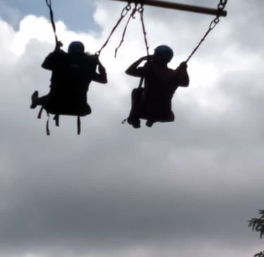 Experience the thrill of swinging up to 120m with friends and team spirit.
